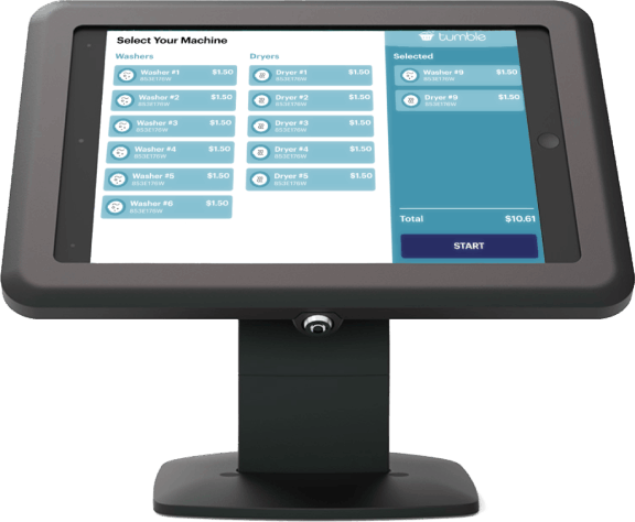All machines utilize Tumble’s proprietary connected system with cashless payment. With signing of a 5 year or more term, Tumble will include optional Smart Centers.